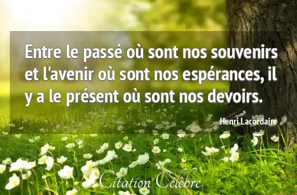 Entre le passé où sont nos souvenirs et l'avenir où sont nos espérances, il y a le présent où sont nos devoirs.