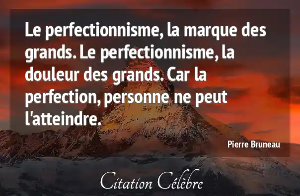 Le perfectionnisme, la marque des grands. Le perfectionnisme, la douleur des grands. Car la perfection, personne ne peut l'atteindre.