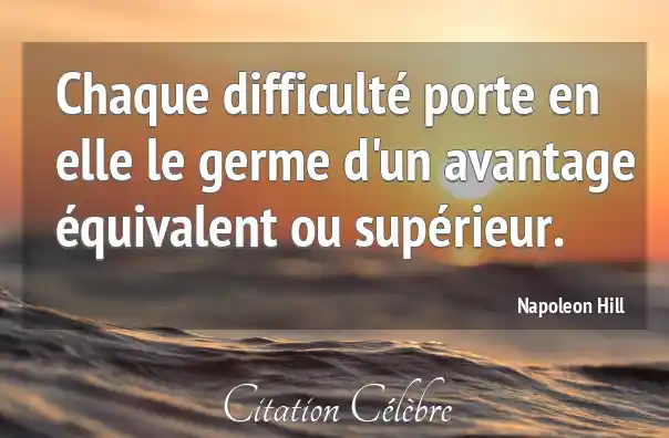 Chaque difficulté porte en elle le germe d'un avantage équivalent ou supérieur.