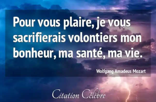 Pour vous plaire, je vous sacrifierais volontiers mon bonheur, ma santé, ma vie.