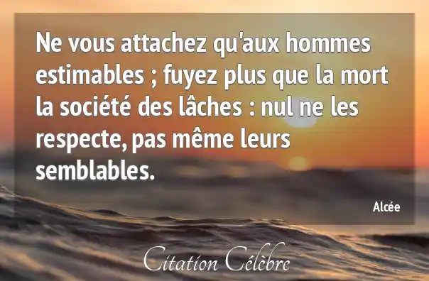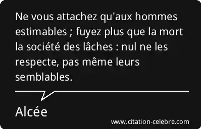 Ne vous attachez qu'aux hommes estimables ; fuyez plus que la mort la société des lâches : nul ne les respecte, pas même leurs semblables.