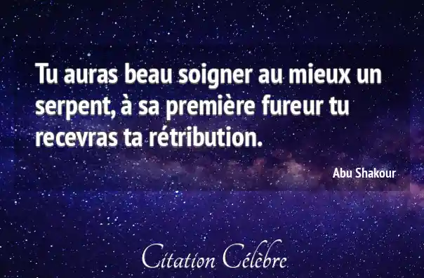 Tu auras beau soigner au mieux un serpent, à sa première fureur tu recevras ta rétribution.