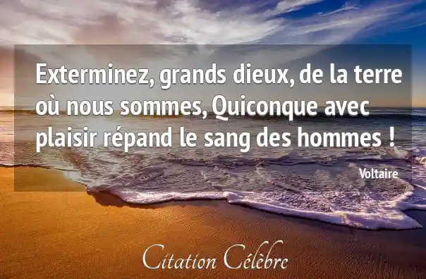 Exterminez, grands dieux, de la terre où nous sommes, Quiconque avec plaisir répand le sang des hommes !