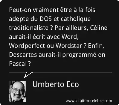 Peut-on vraiment être à la fois adepte du DOS et catholique traditionaliste ? Par ailleurs, Céline aurait-il écrit avec Word, Wordperfect ou Wordstar ? Enfin, Descartes aurait-il programmé en Pascal ?