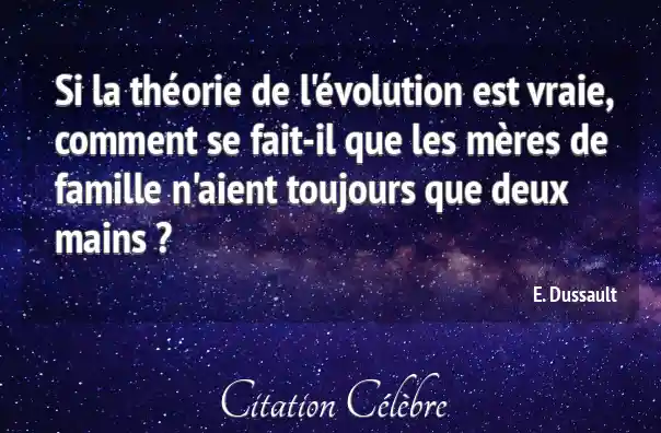 Si la théorie de l'évolution est vraie, comment se fait-il que les mères de famille n'aient toujours que deux mains ?