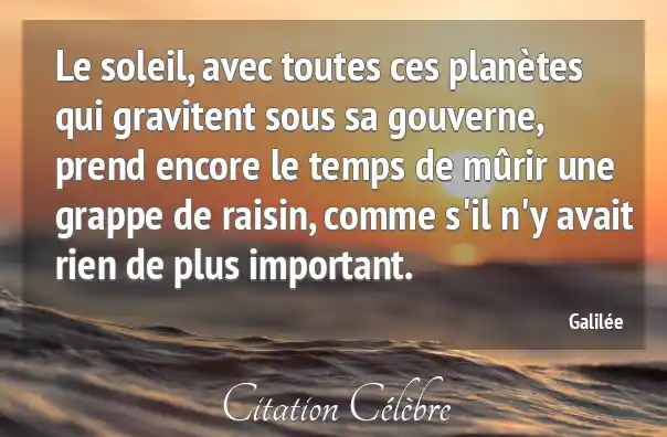Le soleil, avec toutes ces planètes qui gravitent sous sa gouverne, prend encore le temps de mûrir une grappe de raisin, comme s'il n'y avait rien de plus important.