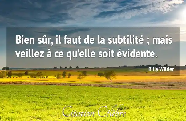 Bien sûr, il faut de la subtilité ; mais veillez à ce qu'elle soit évidente.