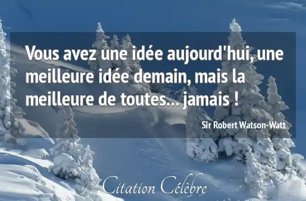 Vous avez une idée aujourd'hui, une meilleure idée demain, mais la meilleure de toutes... jamais !