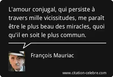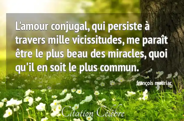 L'amour conjugal, qui persiste à travers mille vicissitudes, me paraît être le plus beau des miracles, quoi qu'il en soit le plus commun.