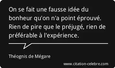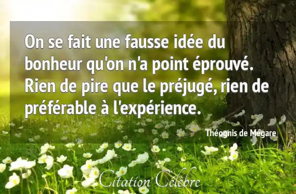 On se fait une fausse idée du bonheur qu'on n'a point éprouvé. Rien de pire que le préjugé, rien de préférable à l'expérience.