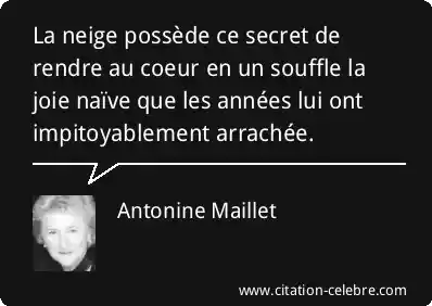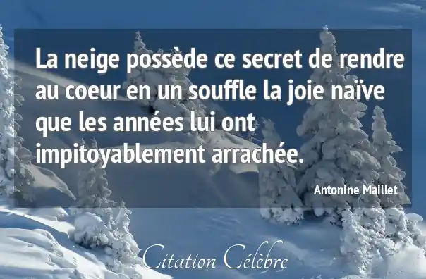 La neige possède ce secret de rendre au coeur en un souffle la joie naïve que les années lui ont impitoyablement arrachée.