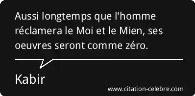 Aussi longtemps que l'homme réclamera le Moi et le Mien, ses oeuvres seront comme zéro.
