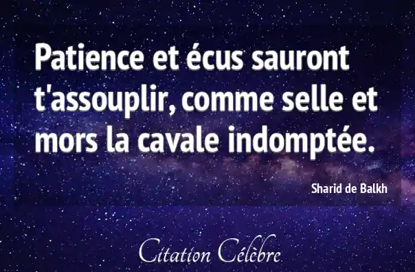 Patience et écus sauront t'assouplir, comme selle et mors la cavale indomptée.