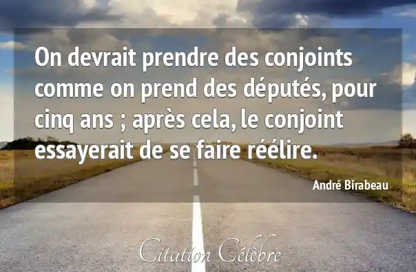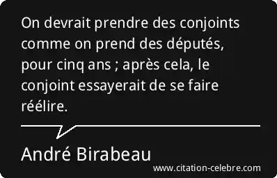 On devrait prendre des conjoints comme on prend des députés, pour cinq ans ; après cela, le conjoint essayerait de se faire réélire.