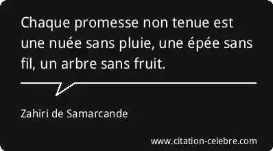Chaque promesse non tenue est une nuée sans pluie, une épée sans fil, un arbre sans fruit.