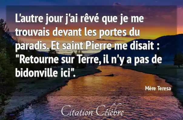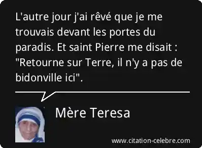 L'autre jour j'ai rêvé que je me trouvais devant les portes du paradis. Et saint Pierre me disait : "Retourne sur Terre, il n'y a pas de bidonville ici".