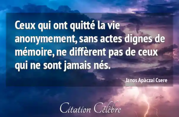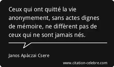 Ceux qui ont quitté la vie anonymement, sans actes dignes de mémoire, ne diffèrent pas de ceux qui ne sont jamais nés.