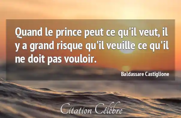 Citation Baldassare Castiglione doit : Quand le prince peut ce qu'il veut, il y a...