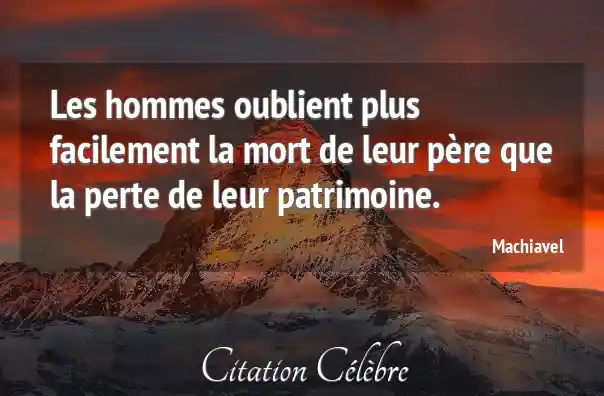 Les hommes oublient plus facilement la mort de leur père que la perte de leur patrimoine.