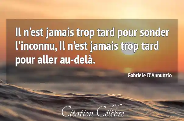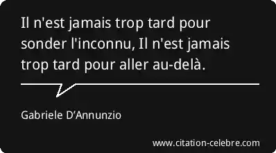 Il n'est jamais trop tard pour sonder l'inconnu, Il n'est jamais trop tard pour aller au-delà.
