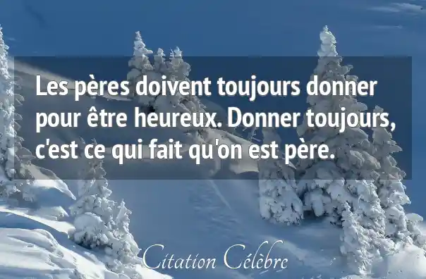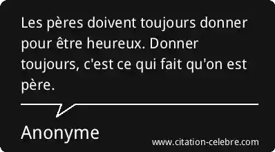 Les pères doivent toujours donner pour être heureux. Donner toujours, c'est ce qui fait qu'on est père.