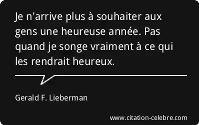 Je n'arrive plus à souhaiter aux gens une heureuse année. Pas quand je songe vraiment à ce qui les rendrait heureux.