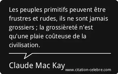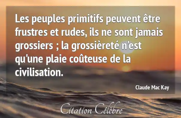 Les peuples primitifs peuvent être frustres et rudes, ils ne sont jamais grossiers ; la grossièreté n'est qu'une plaie coûteuse de la civilisation.