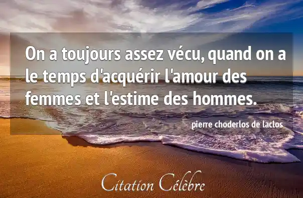 On a toujours assez vécu, quand on a le temps d'acquérir l'amour des femmes et l'estime des hommes.