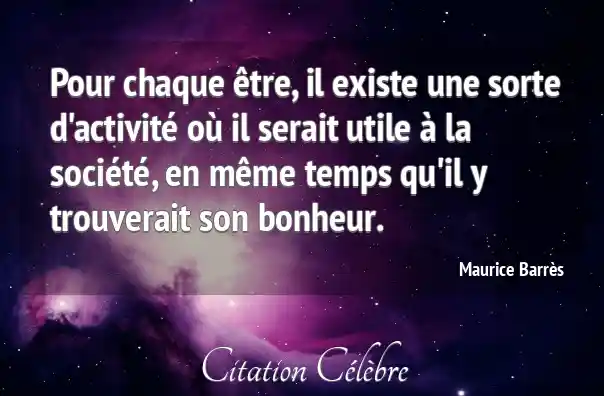 Pour chaque être, il existe une sorte d'activité où il serait utile à la société, en même temps qu'il y trouverait son bonheur.