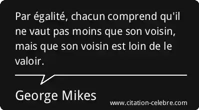 Par égalité, chacun comprend qu'il ne vaut pas moins que son voisin, mais que son voisin est loin de le valoir.