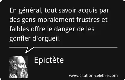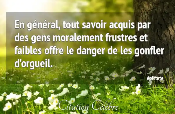En général, tout savoir acquis par des gens moralement frustres et faibles offre le danger de les gonfler d'orgueil.
