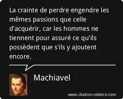 La crainte de perdre engendre les mêmes passions que celle d'acquérir, car les hommes ne tiennent pour assuré ce qu'ils possèdent que s'ils y ajoutent encore.