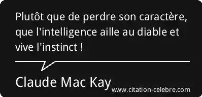 Plutôt que de perdre son caractère, que l'intelligence aille au diable et vive l'instinct !