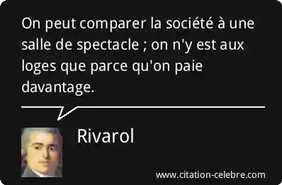 On peut comparer la société à une salle de spectacle ; on n'y est aux loges que parce qu'on paie davantage.