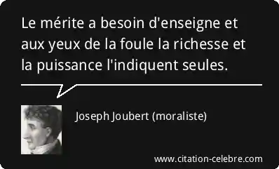 Le mérite a besoin d'enseigne et aux yeux de la foule la richesse et la puissance l'indiquent seules.