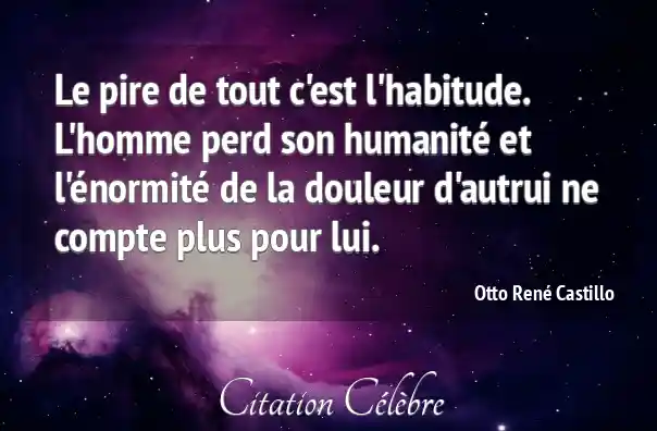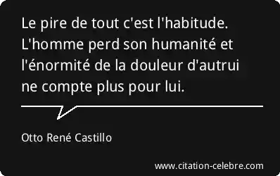 Le pire de tout c'est l'habitude. L'homme perd son humanité et l'énormité de la douleur d'autrui ne compte plus pour lui.