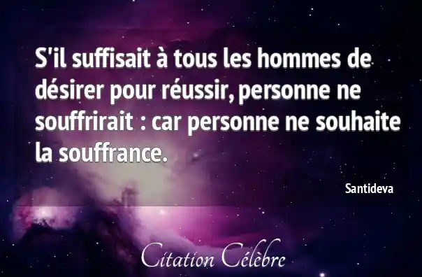 S'il suffisait à tous les hommes de désirer pour réussir, personne ne souffrirait : car personne ne souhaite la souffrance.