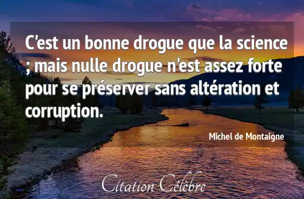 C'est un bonne drogue que la science ; mais nulle drogue n'est assez forte pour se préserver sans altération et corruption.