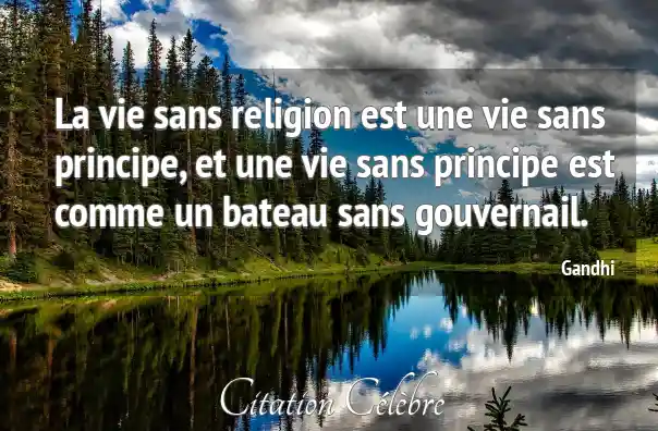 La vie sans religion est une vie sans principe, et une vie sans principe est comme un bateau sans gouvernail.