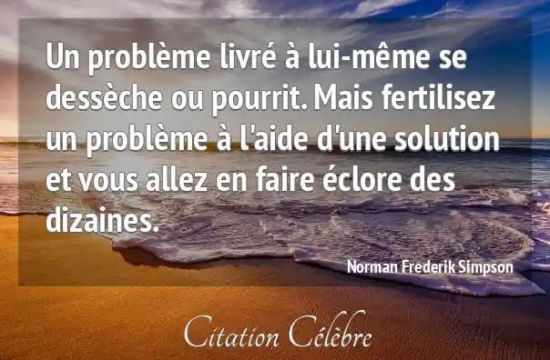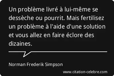 Un problème livré à lui-même se dessèche ou pourrit. Mais fertilisez un problème à l'aide d'une solution et vous allez en faire éclore des dizaines.