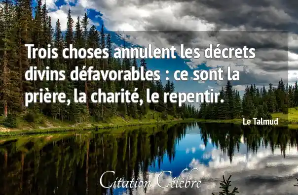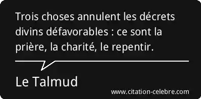 Trois choses annulent les décrets divins défavorables : ce sont la prière, la charité, le repentir.