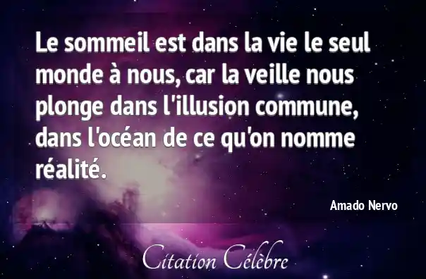 Le sommeil est dans la vie le seul monde à nous, car la veille nous plonge dans l'illusion commune, dans l'océan de ce qu'on nomme réalité.