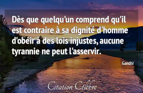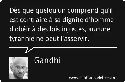 Dès que quelqu'un comprend qu'il est contraire à sa dignité d'homme d'obéir à des lois injustes, aucune tyrannie ne peut l'asservir.