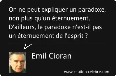 On ne peut expliquer un paradoxe, non plus qu'un éternuement. D'ailleurs, le paradoxe n'est-il pas un éternuement de l'esprit ?