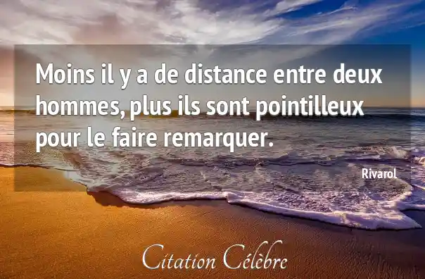 Moins il y a de distance entre deux hommes, plus ils sont pointilleux pour le faire remarquer.