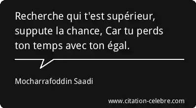 Recherche qui t'est supérieur, suppute la chance, Car tu perds ton temps avec ton égal.