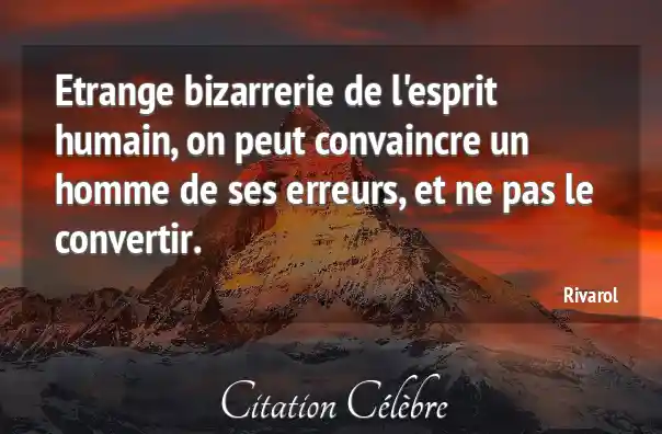 Etrange bizarrerie de l'esprit humain, on peut convaincre un homme de ses erreurs, et ne pas le convertir.