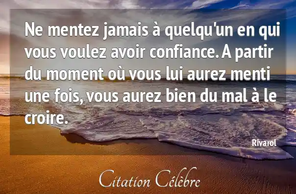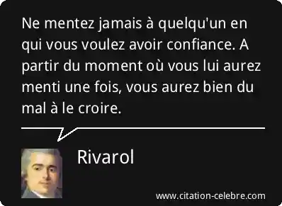 Ne mentez jamais à quelqu'un en qui vous voulez avoir confiance. A partir du moment où vous lui aurez menti une fois, vous aurez bien du mal à le croire.