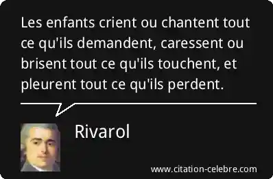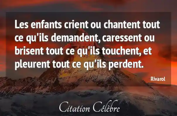 Les enfants crient ou chantent tout ce qu'ils demandent, caressent ou brisent tout ce qu'ils touchent, et pleurent tout ce qu'ils perdent.