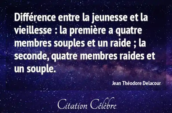 Différence entre la jeunesse et la vieillesse : la première a quatre membres souples et un raide ; la seconde, quatre membres raides et un souple.